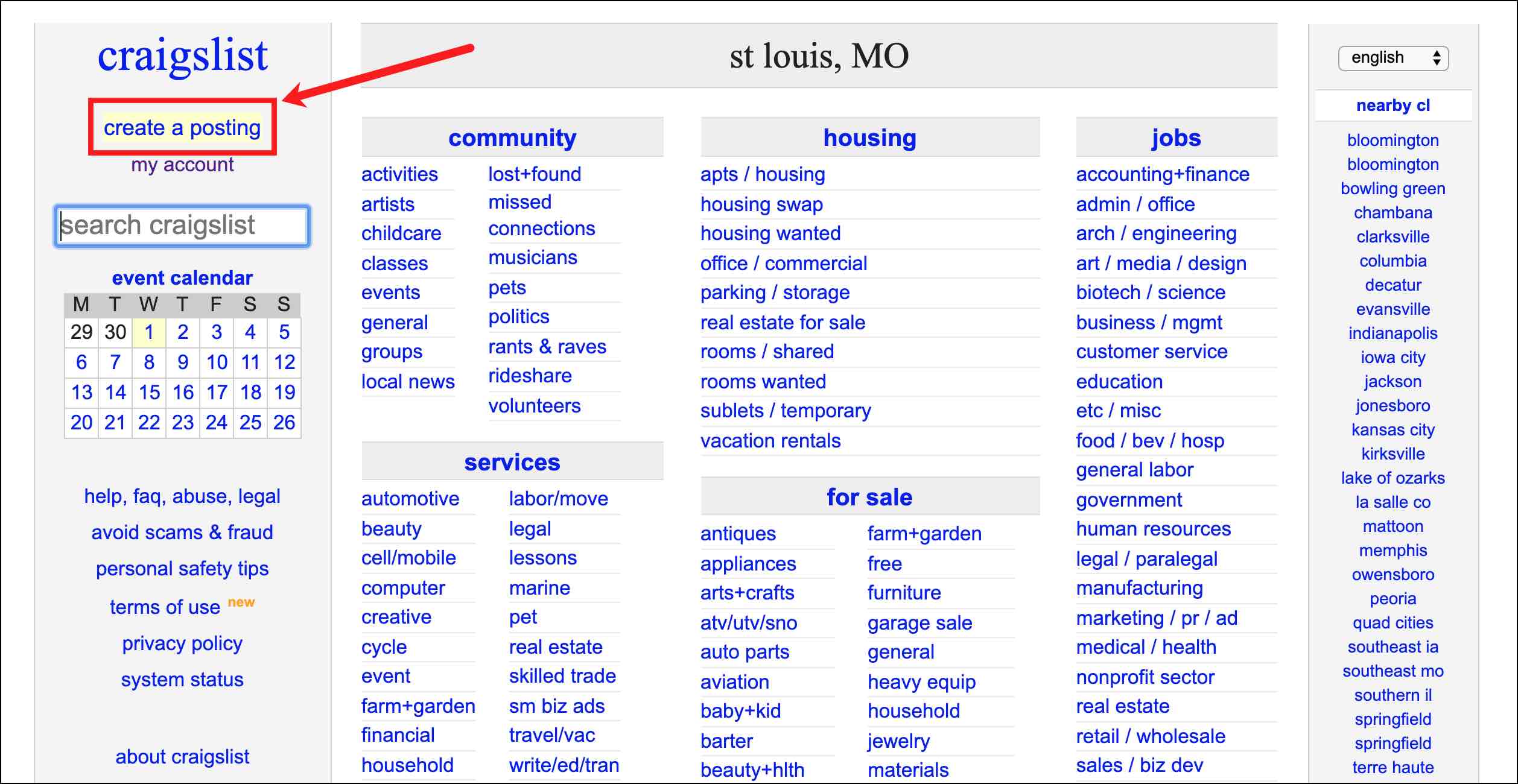 To get started, head over to Craigslist (in your market city) and click create a posting.